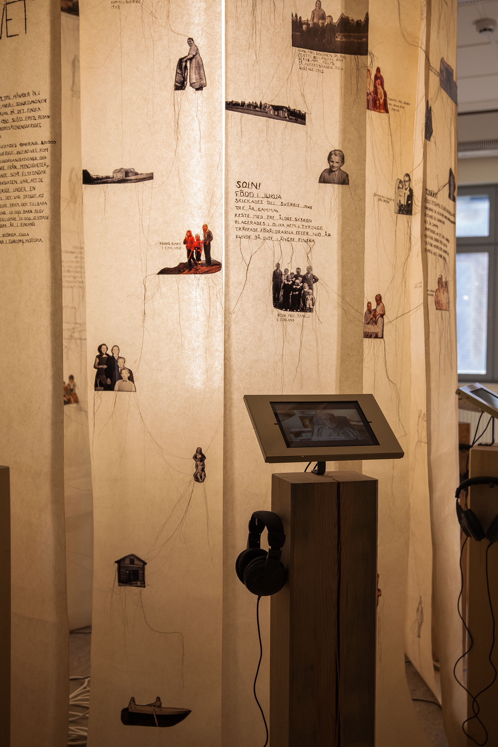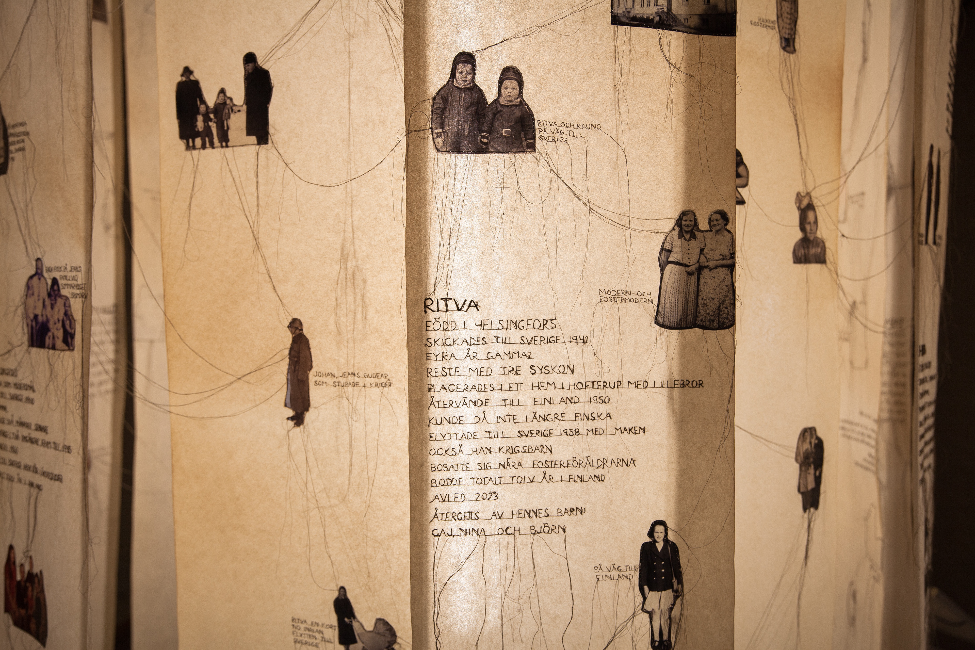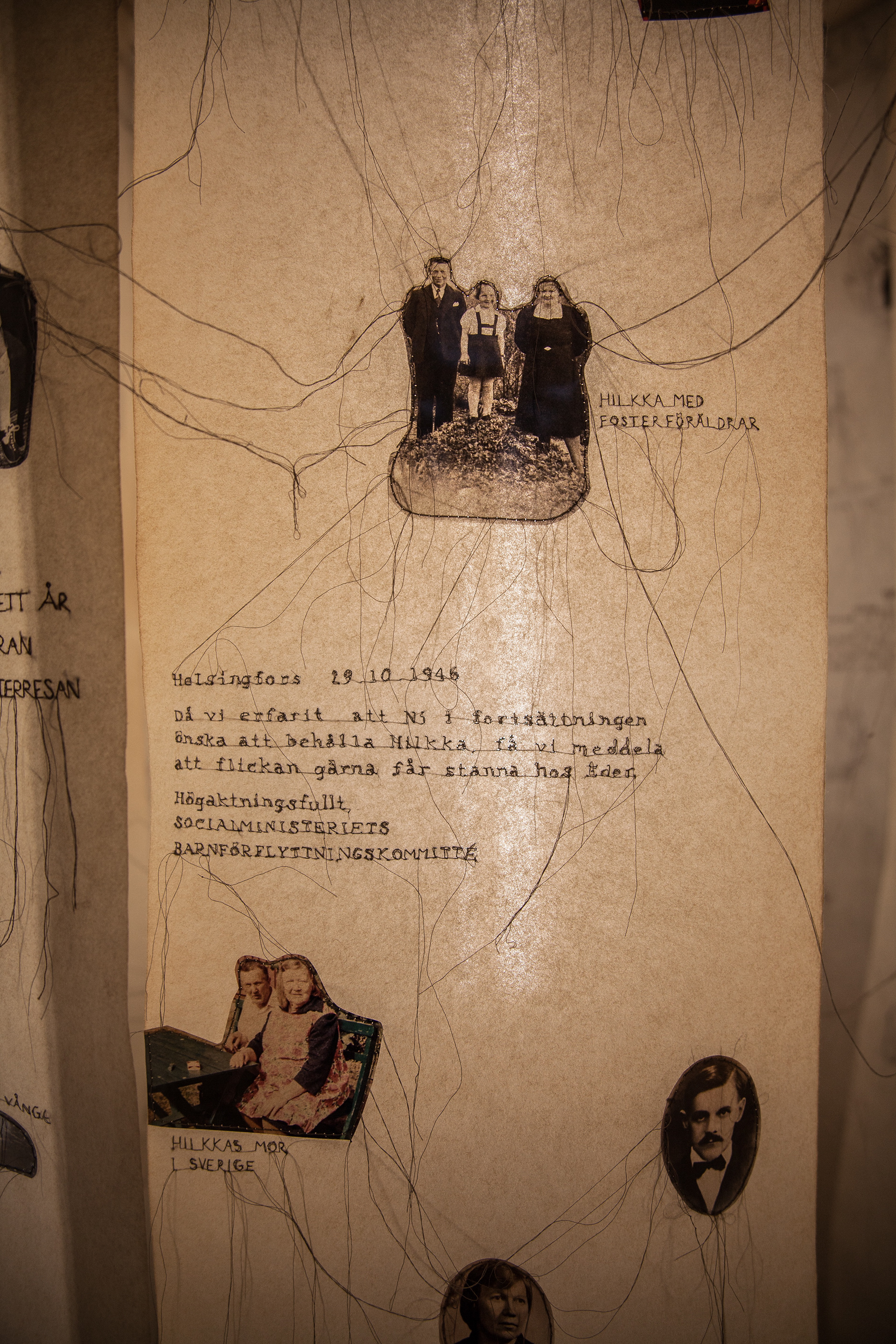 The project, created together with Finnish war children and their descendants, consists of six short films and a large-scale installation where stories, photographs and embroidery are interwoven into a collective space of memory. It reflects on language, loss and belonging, and how these experiences continue to resonate throughout life.